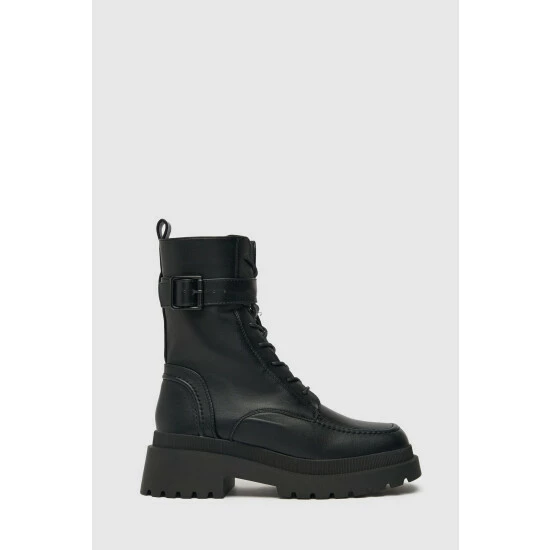 A staple black boot is a wardrobe essential and the Aalliyah high cut buckle boots from Schuh have got you covered. With a black man-made upper, chunky sole and gold buckle detailing – you re definitely nailing the new season trends with these!