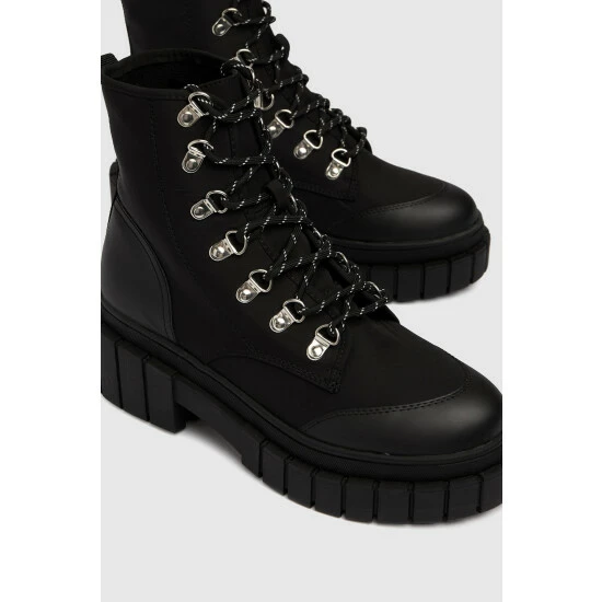 The Adriana Chunky hiker boot takes the winter trends in a black colourway, man-made upper and real thick sole unit for all the edge. Lace-up closure and durable layered panels complete this look.