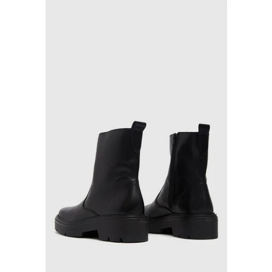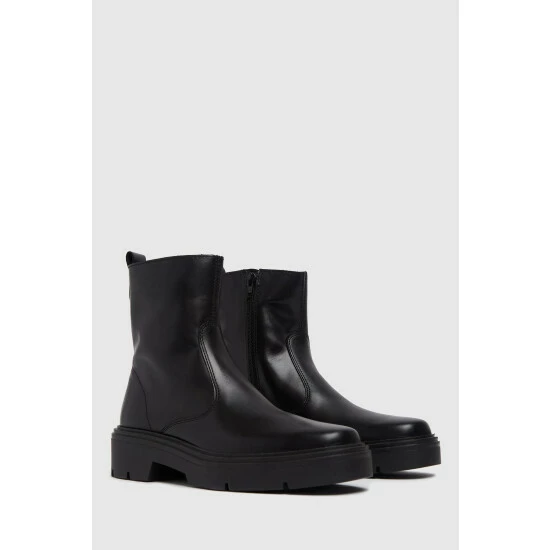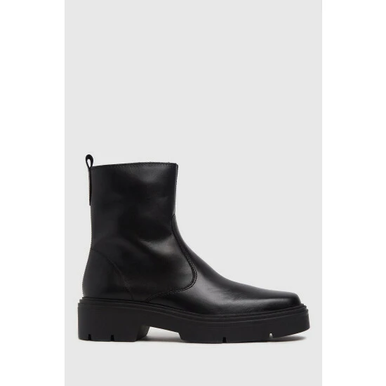 Upgrade your boot season style with the Alina Leather Sock Boot! This sleek profile boasts a black leather upper with a smooth finish, chunky sole unit and handy heel loop for easy wear.