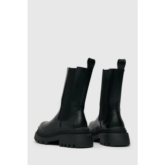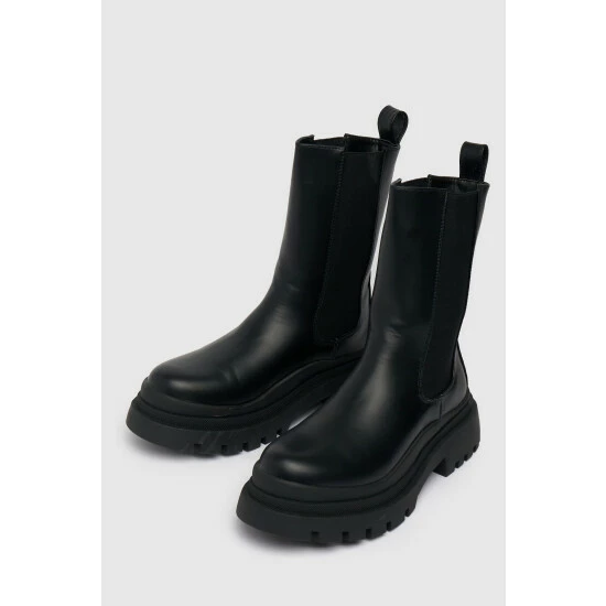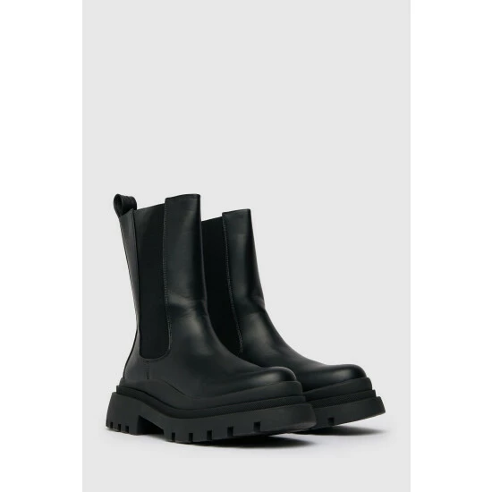 Ready to take your new season look to the next level? Schuh has got you covered. The Anastasia high-cut Chelsea boot arrives in a sleek black colourway with a chunky sole unit, elasticated ankle inserts and plenty of style.