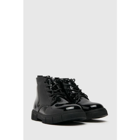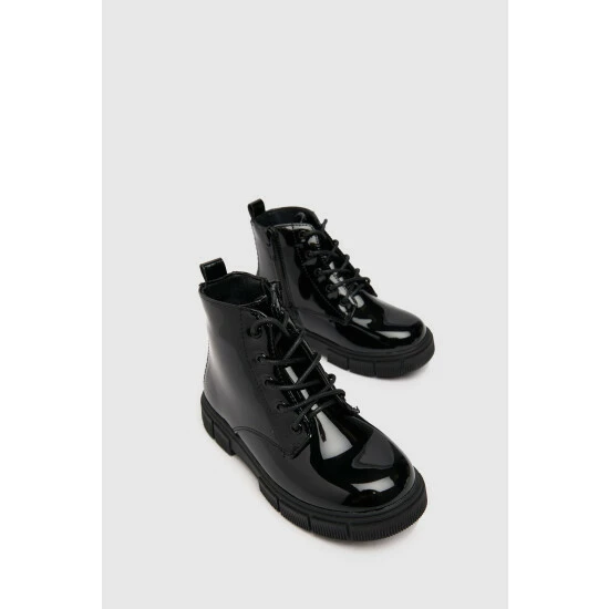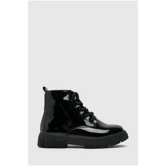 The Chant lace boot from Schuh arrives in toddler sizes. Featuring a sleek black patent upper with a chunky rubber outsole for durability. A memory foam sock liner ensures ultimate comfort, paired with any new season fit to keep those little feet smart.