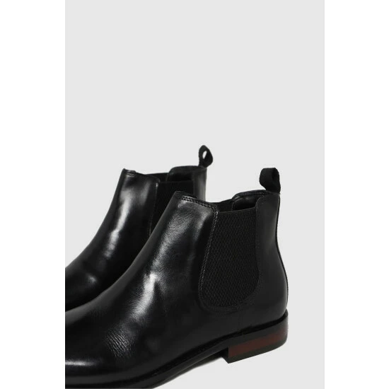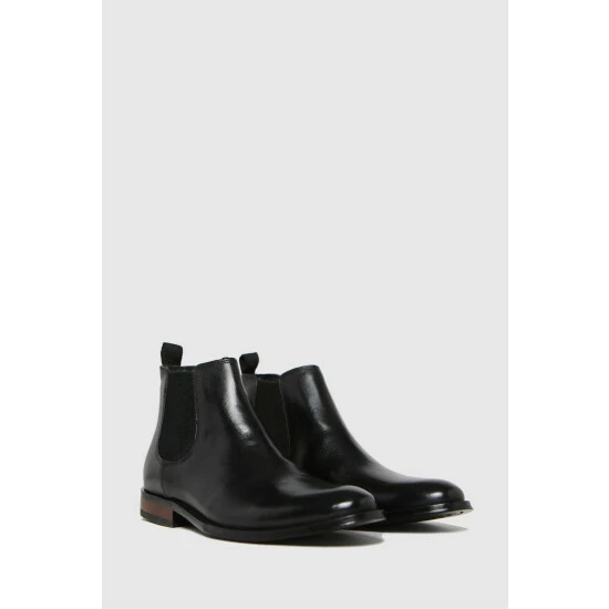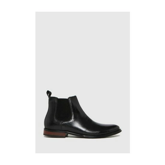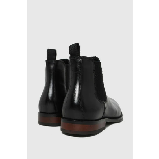 Step out in style with the Schuh Damien Leather Chelsea Boot! This profile takes your look up a level in a black premium leather with stretchy ankle inserts and slight heel.