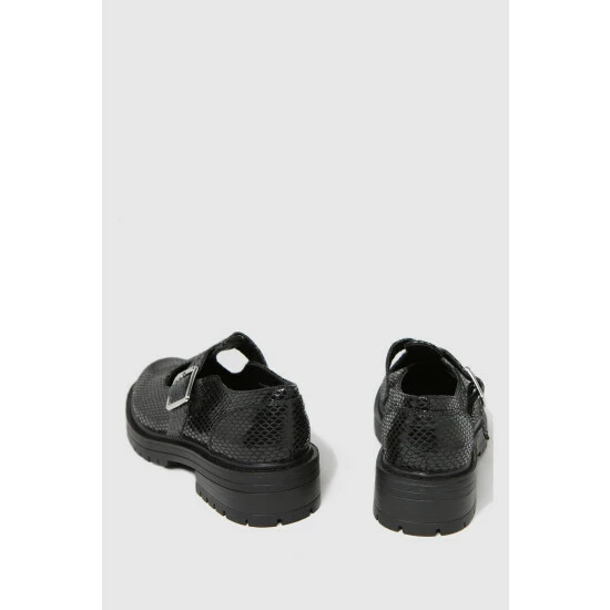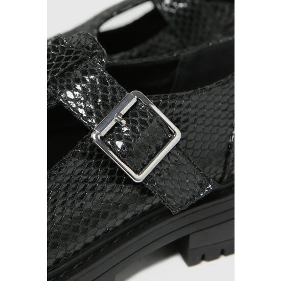 The Lani Snake T-Bar Shoe arrives to upgrade any everyday look! Boasting a black man-made upper with an animal print texture to finish. Chunky block heel and sole add some edge to this fit.