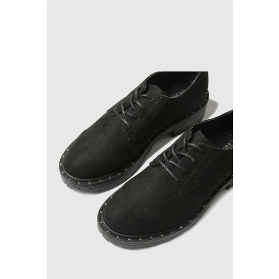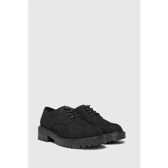 The Leona Chunky Lace Up shoe lands in a black man-made upper paired with a thick and elevated rubber outsole for ultimate statement style. Studs add a lil’ bling while laces keep it easy.