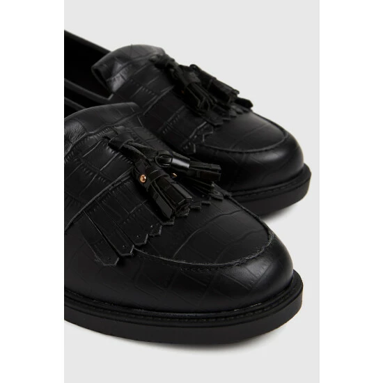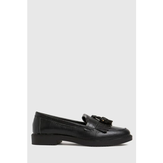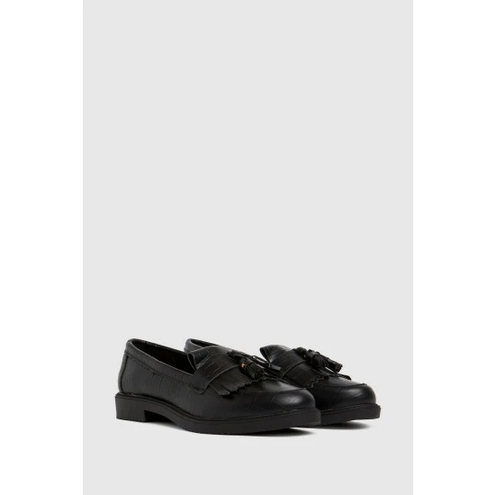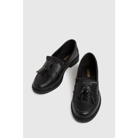 The Lorri Croc Leather Loafer is a classic and on-trend addition that every wardrobe deserves! Crafted from a black leather upper paired with a grippy rubber outsole and finished with tassel detailing.
