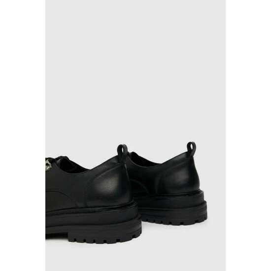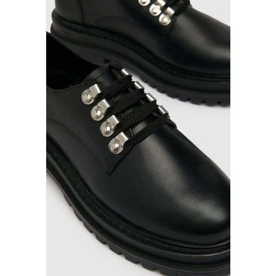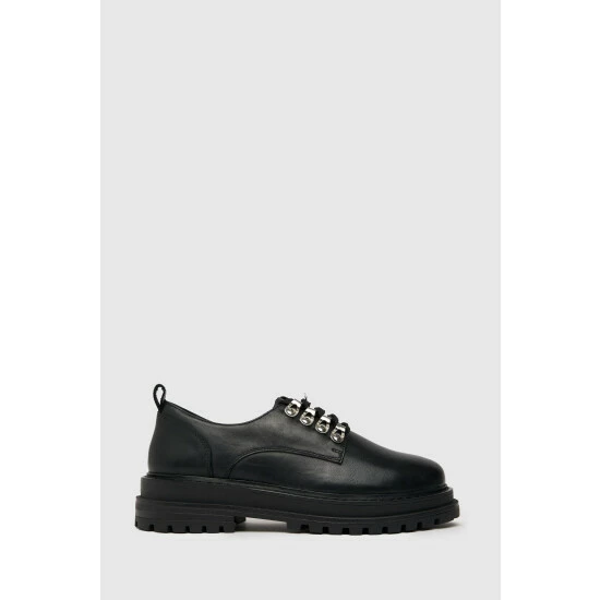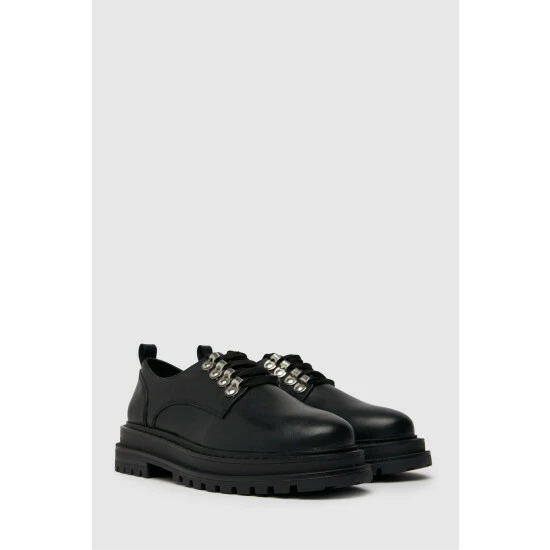 The Lucinda Leather Hiker Lace Up Shoe is a chunky addition to any formal look! Arriving in black, this leather shoe boasts a chunky, rubber sole unit with layered panels and classic stitching for a premium finish.