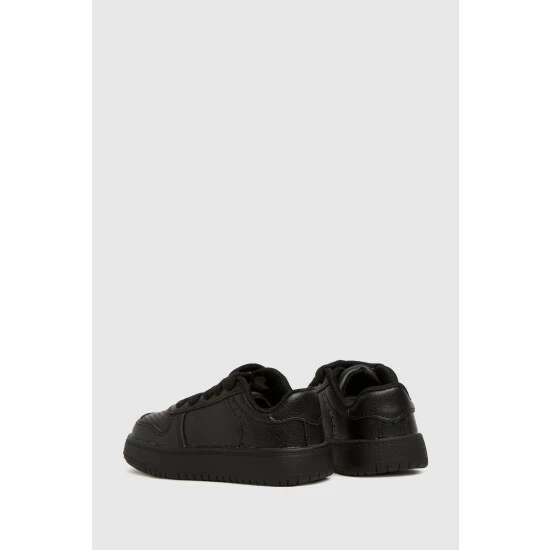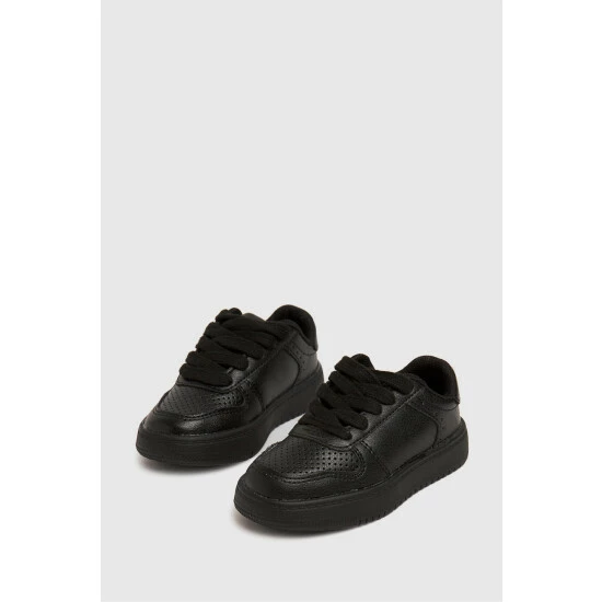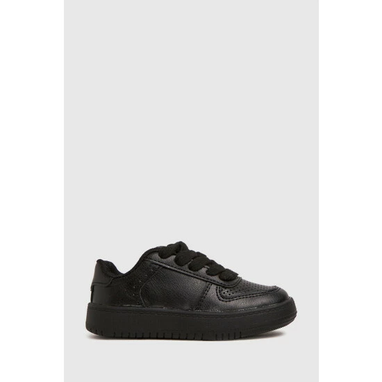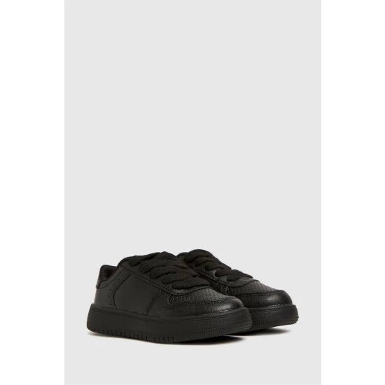 It ain t a collection without an all-black sneaker! The kids Schuh Mighty lace-up trainer lands in a black man-made upper paired with a lightweight court silhouette that ll look fresh with any look.