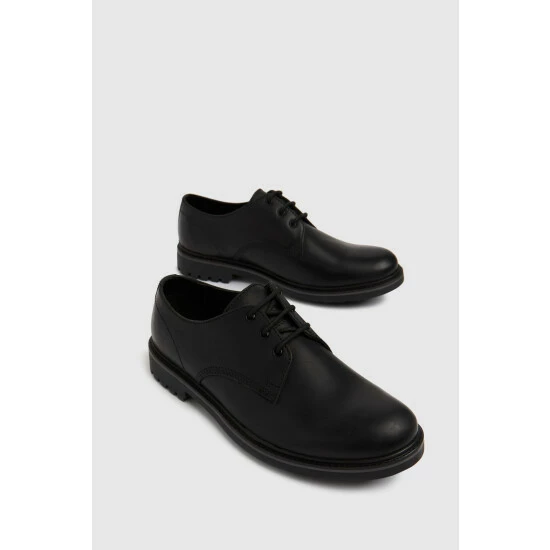 Get ready with the Schuh Pax Derby! This look arrives in a black leather with classic stitched panels, lace-up closure and sturdy rubber outsole to get you through. Work or casual wear, this fit wins.