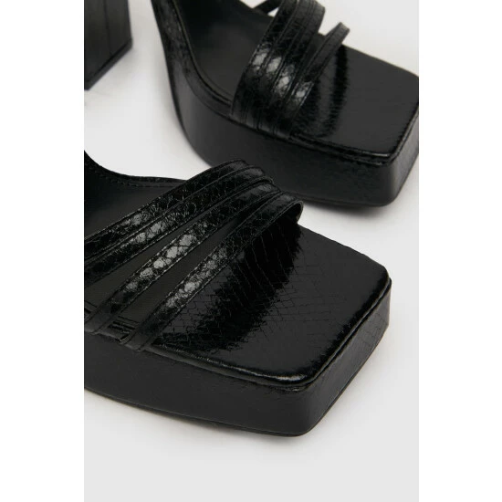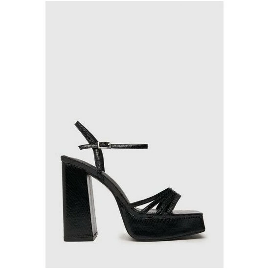 The black Skylar Square Toe Heel is the chunky fit you need in your rotation. Arriving in a snake print pattern, this on-trend profile is comfortable and durable. Featuring a platform sole, block heel and strappy detailing.