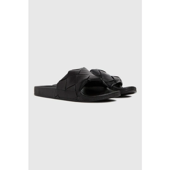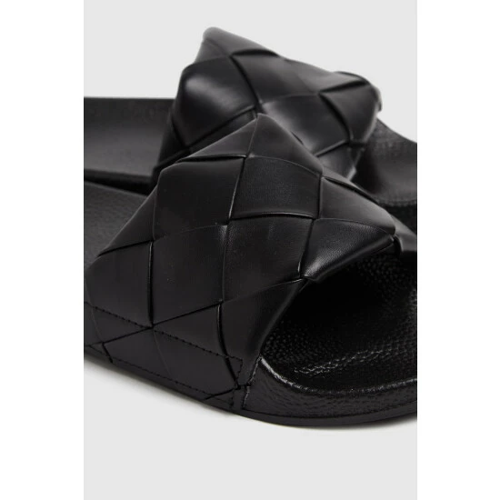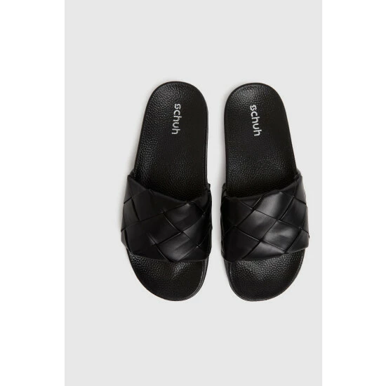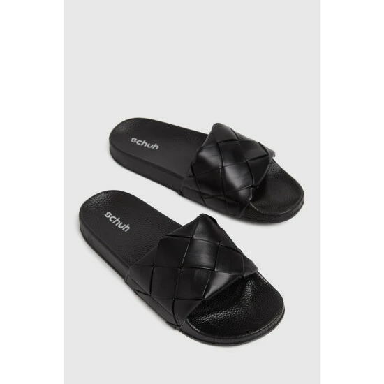 Schuh Black Tibby Weave Slide Sandals