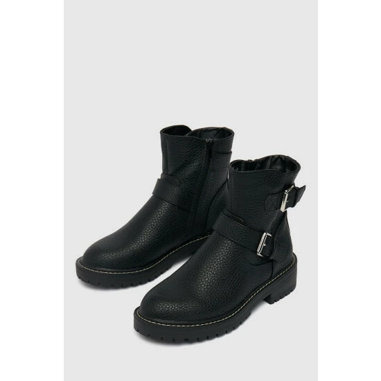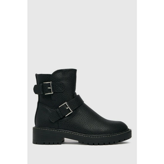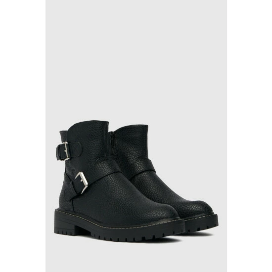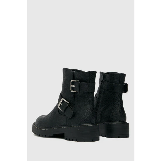 Nail the trends this winter with the wide fit Ashley biker boot. This black profile arrives with a stud detailing, two adjustable buckles and a slight heel for added height on any look.