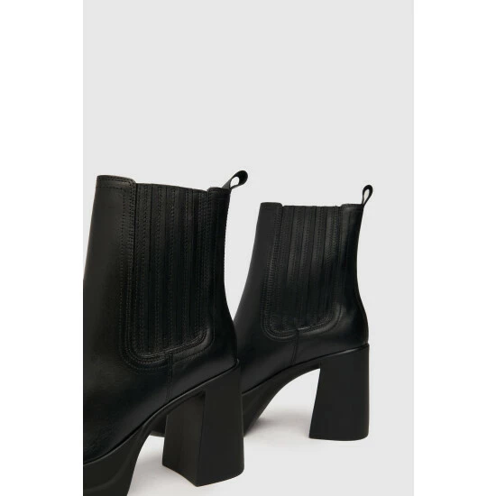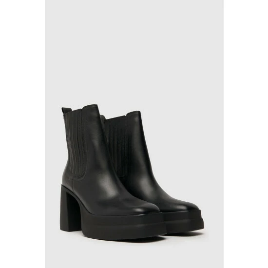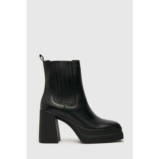 Nail the new season trends with the Bonnie Leather Double Platform Chelsea Boot from schuh. This chunky fit arrives in a wear-anywhere black colourway with a chunky sole and block heel that is perfect for dressing up or down! Ready to cop?