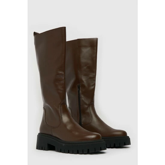 Get your winter wardrobe prepped and ready with Schuh! The Edit Paxton Leather Pull On Knee Boot boasts a brown colourway with a chunky sole that’ll take your look to new heights. This fit is iconic, trust us.