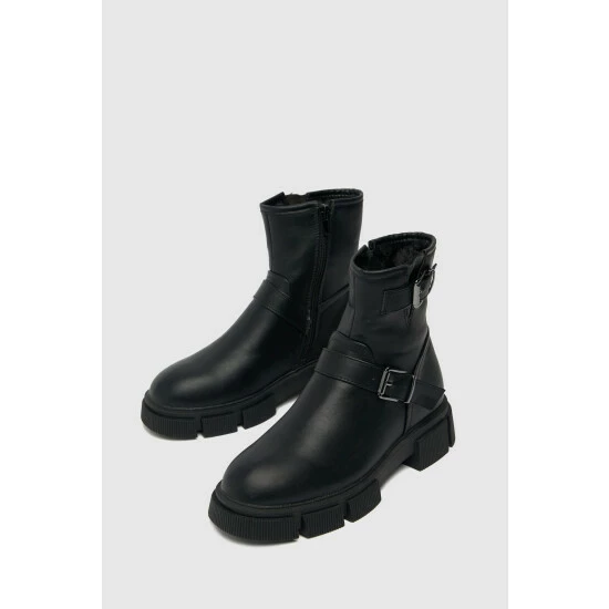Get their new season wardrobe prepped and ready with schuh! The youth Celeste Biker Boot boasts a black man made upper, with a chunky sole and cool buckle detailing for all the biker vibes. A faux shearling lining will keep the kids feet cosy!