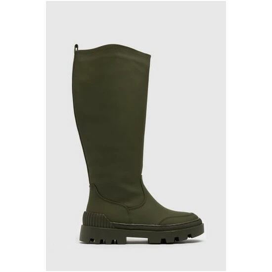 Get your new season wardrobe prepped and ready with schuh! The Devon Rubberised Knee Boot boasts a dark green colourway with a chunky sole that’ll take your look to new heights. This fit is iconic, trust them.