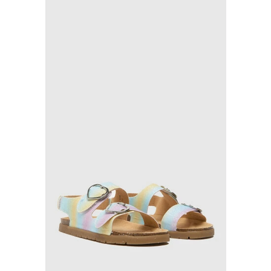 Take their summer style to the next level with the schuh Twinkle Heart Buckle sandal! This kids fit is crafted from a supportive colourful man-made upper with three strap fastenings and a real cool thick footbed.