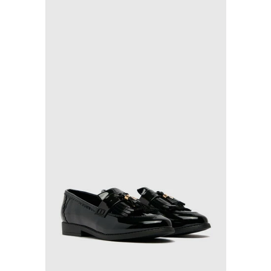 The schuh Lacy Loafer is a fit your kids need this season! Arriving in black, this patent shoe boasts a chunky rubber outsole, classic stitched panels and real comfy footbed. The obvious choice.