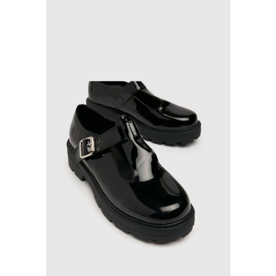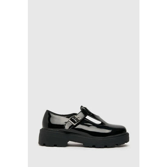Schuh Lyra Patent Chunky T-Bar Black Shoes