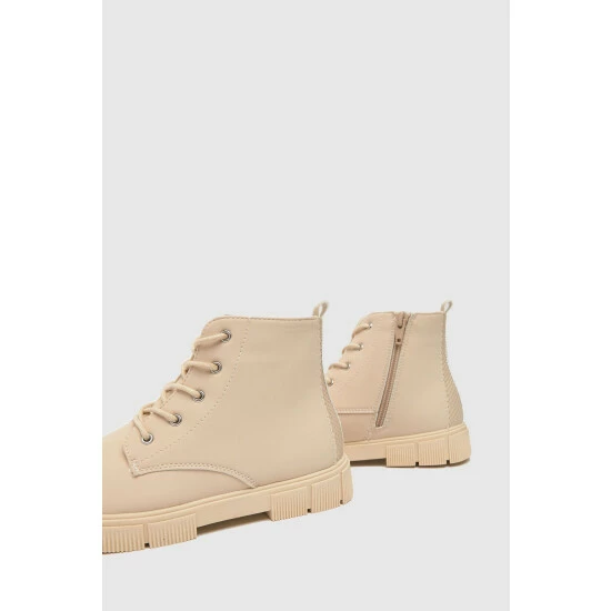 The Chant lace boot from Schuh arrives in junior sizes. Featuring a man-made upper in a natural colourway with a chunky rubber outsole for durability. A memory foam sock liner ensures ultimate comfort. Pair with any fit to keep those little feet smart!