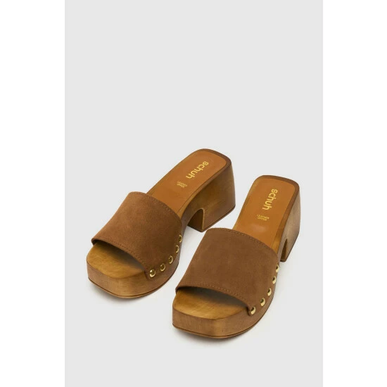 Level up your new season wardrobe with the Tanika suede mule clog sandal from schuh! Boasting a slip-on silhouette with a tan suede upper, thick supportive strap and a block heel. The perfect summer sandal!