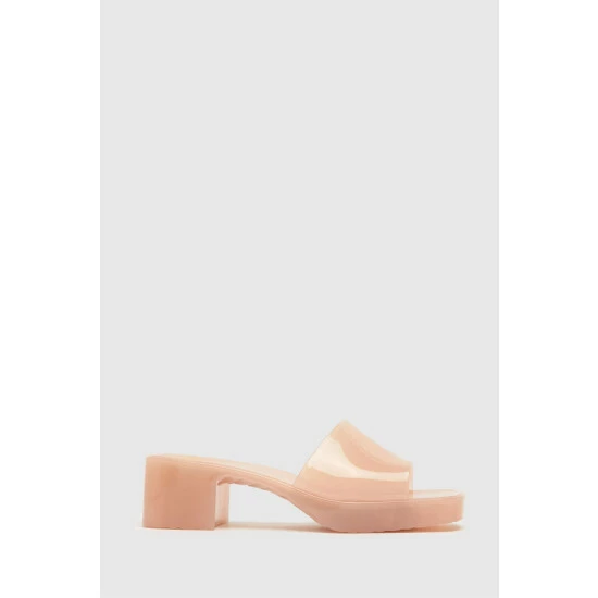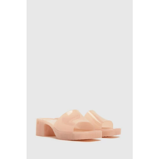 Level up your summer wardrobe with the schuh Snoh Jelly heel shoes. Boasting a pale pink colourway in a man made upper with a stunning block heel.