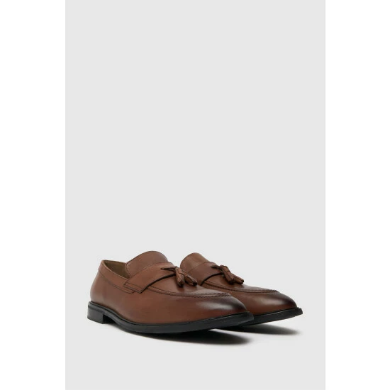 The schuh Raheem Tassel Loafer is a classic and on-trend addition that every wardrobe deserves! Crafted from a brown leather upper paired with a grippy rubber outsole and finished with tassel detailing.