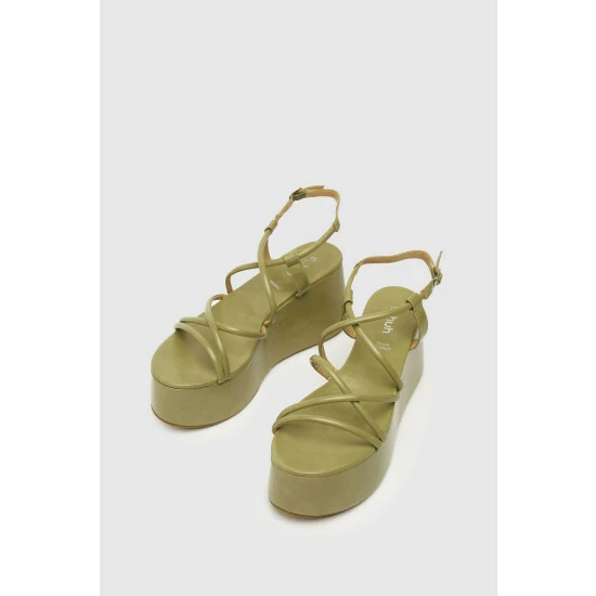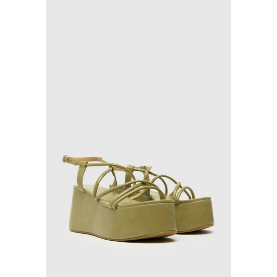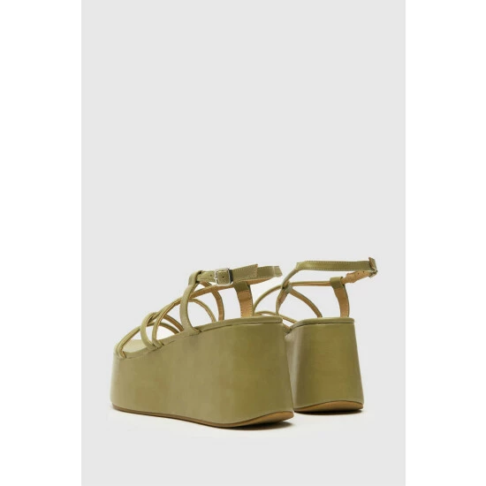 The schuh Sam Strappy Flatform sandal adds some 80s style to your collection that they all know you crave! This sandal boasts a green colourway and is crafted from a man-made upper sat on a thick flatform sole and comfortable footbed.