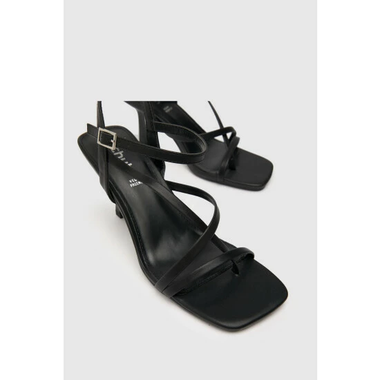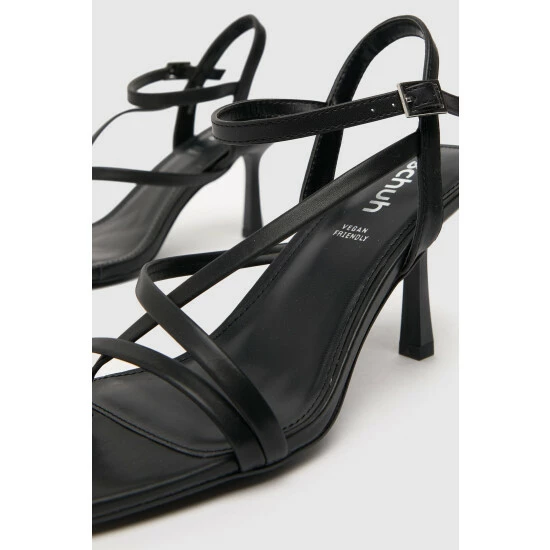 Pair up with the Sania Strappy Heel for ultimate weekend style! This fit lands in a black man-made upper with sassy front detailing and plenty of style.