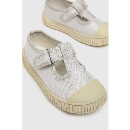 Start the season in style with the schuh Kids collection! The toddler total glitter T-bar shoes lands in a silver fabric upper paired with a grippy rubber tread – thank them later.