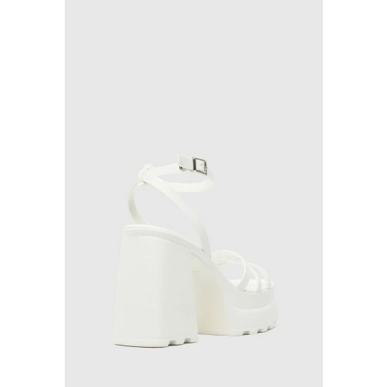 Pair up with the Sofia Platform Heel from schuh for ultimate weekend style! This fit lands in a chunky silhouette with a man made upper and sassy front. The white colourway is a perfect match for any summer look!