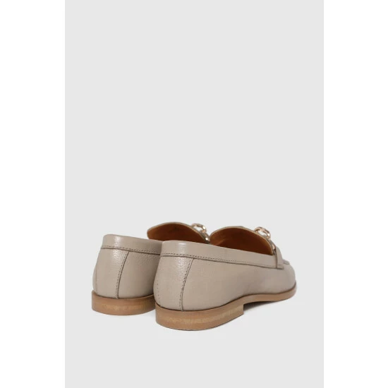 The Libby Leather Chain Loafer upgrades your formal wardrobe in a stone colourway paired with a simple and comfortable silhouette for all-day style. Finished with metallic chain detail and classic stitching.