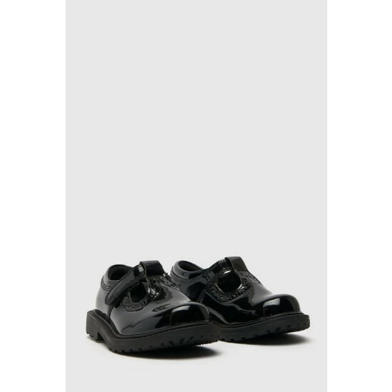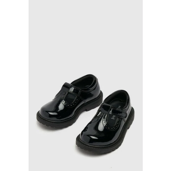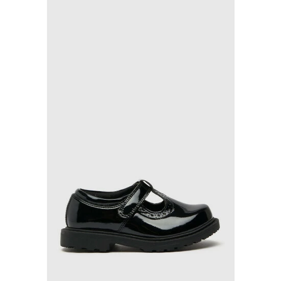 Schuh toddler black lock patent T-bar shoes feature slip-resistant sole, water-based adhesives and extra comfort memory foam insoles.