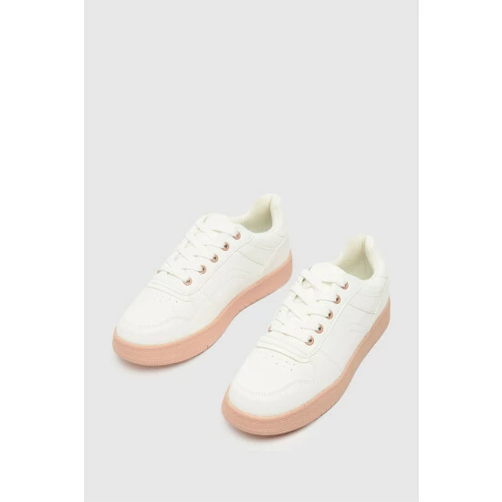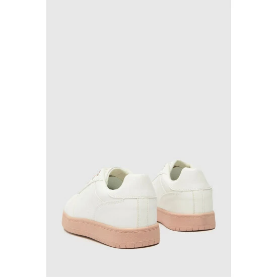 Looking for a sleek white trainer that is versatile and comfortable? We’ve got you covered. Introducing the Machine Trainer! Featuring a white man-made upper with a lace-up closure, comfy footbed and pink rubber outsole for added style.