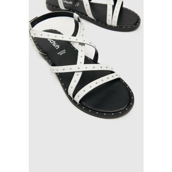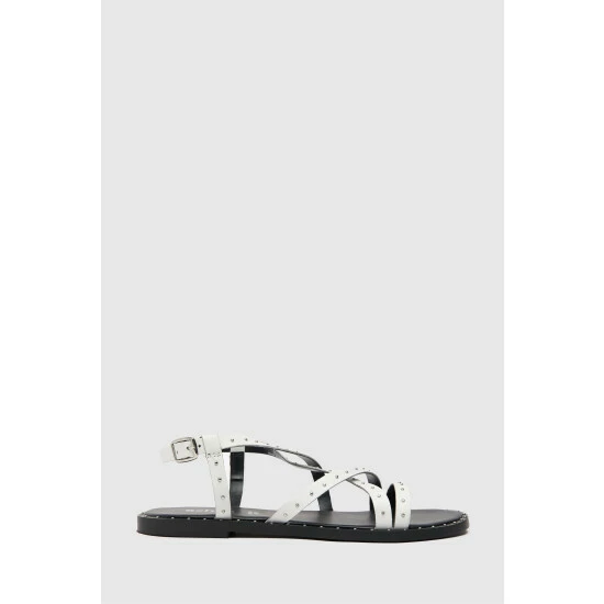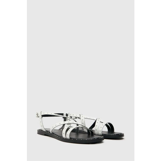 Schuh White Tadlow Studdded Flat Sandal