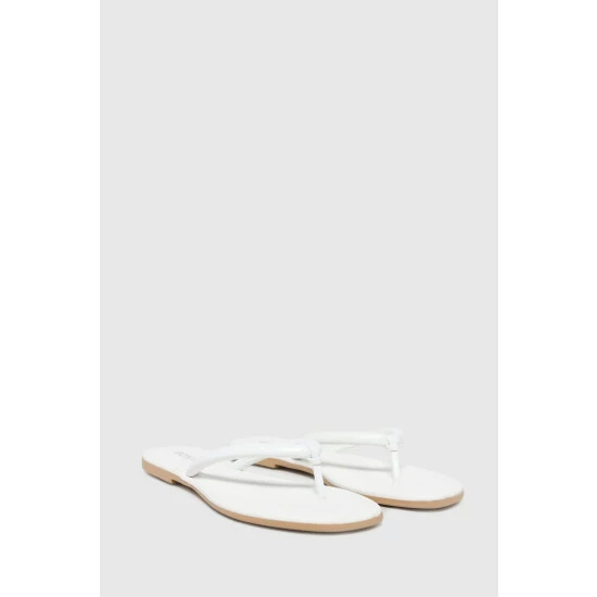 Get ready for summer with the Tassy Toe Post Sandal! This simple and minimal fit lands in a white leather material with a thick strap and flat sole.