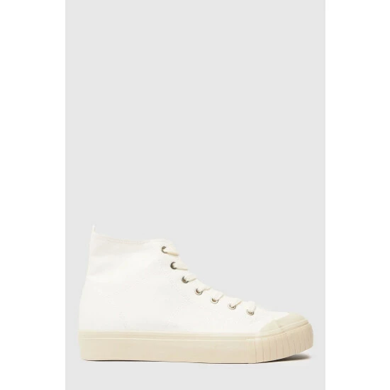 Keep it casual with the schuh Webb Canvas Hi Top Trainer! Arriving in a fresh white colourway, this simple trainer is an essential in every rotation. Thick fabric upper, durable sole and easy lace up closure.